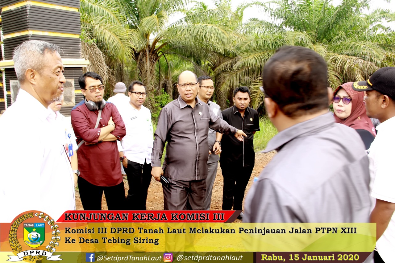 Rombongan Komisi III DPRD Tanah Laut yang langsung dipimpin Ketua Komisi H. Arkani dan SKPD terkait meninjau lokasi jalan milik PTPN XIII di Desa Ambungan, Kecamatan Pelaihari.Rabu (15/01/2020).