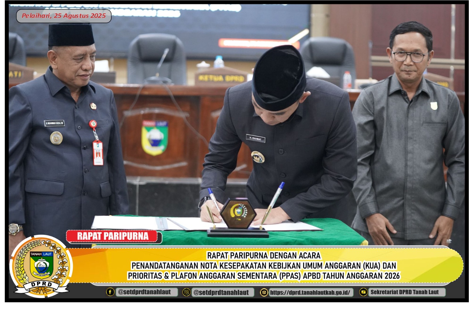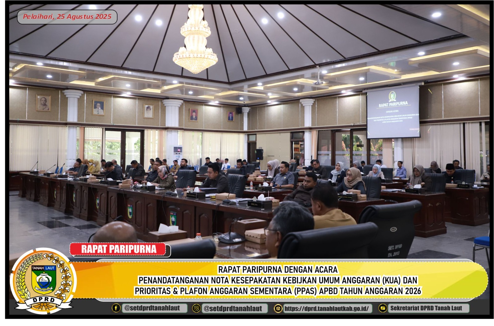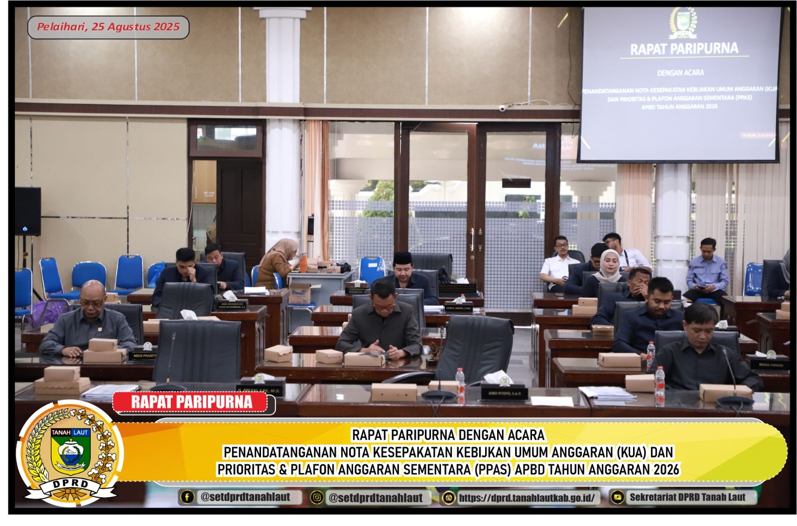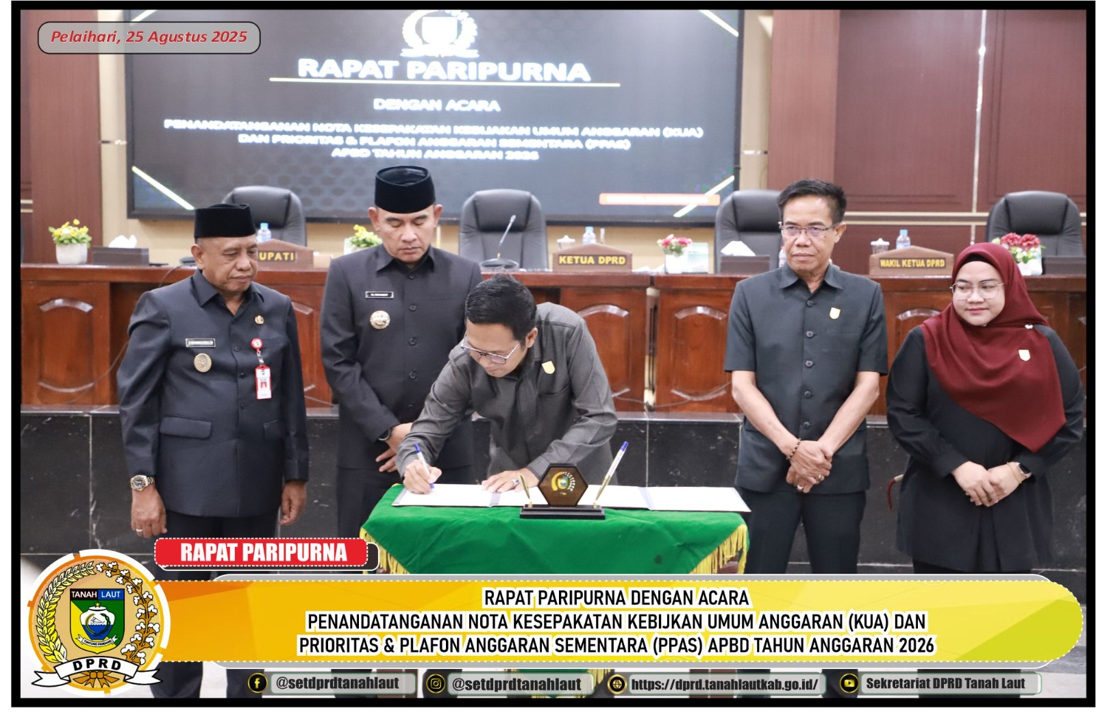 PARIPURNA DENGAN ACARA PENANDATANGANAN NOTA KESEPAKATAN KEBIJAKAN UMUM ANGGARAN (KUA) DAN PRIORITAS & PLAFON ANGGARAN SEMENTARA (PPAS) APBD TAHUN ANGGARAN 2026