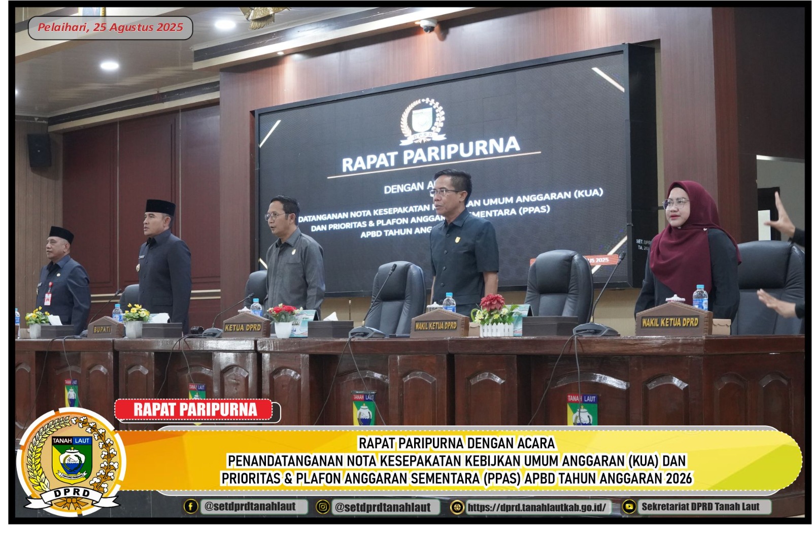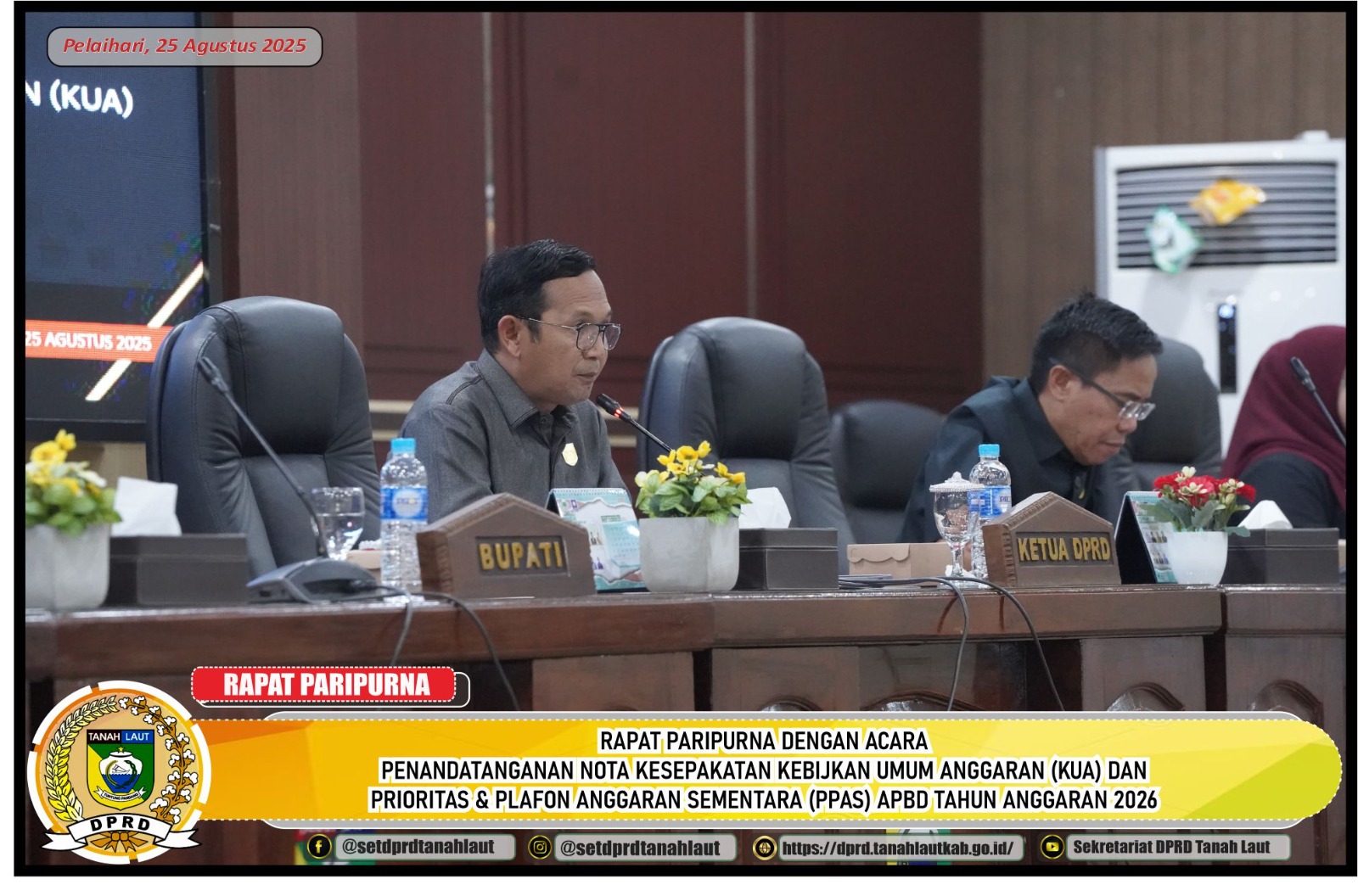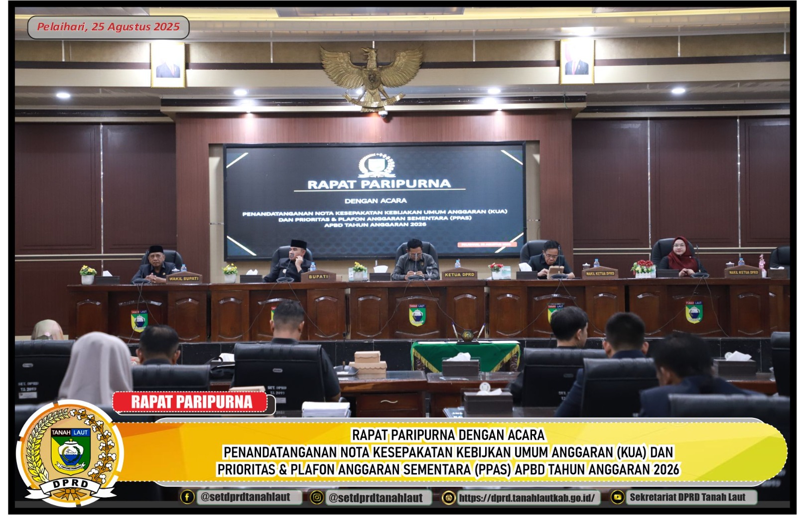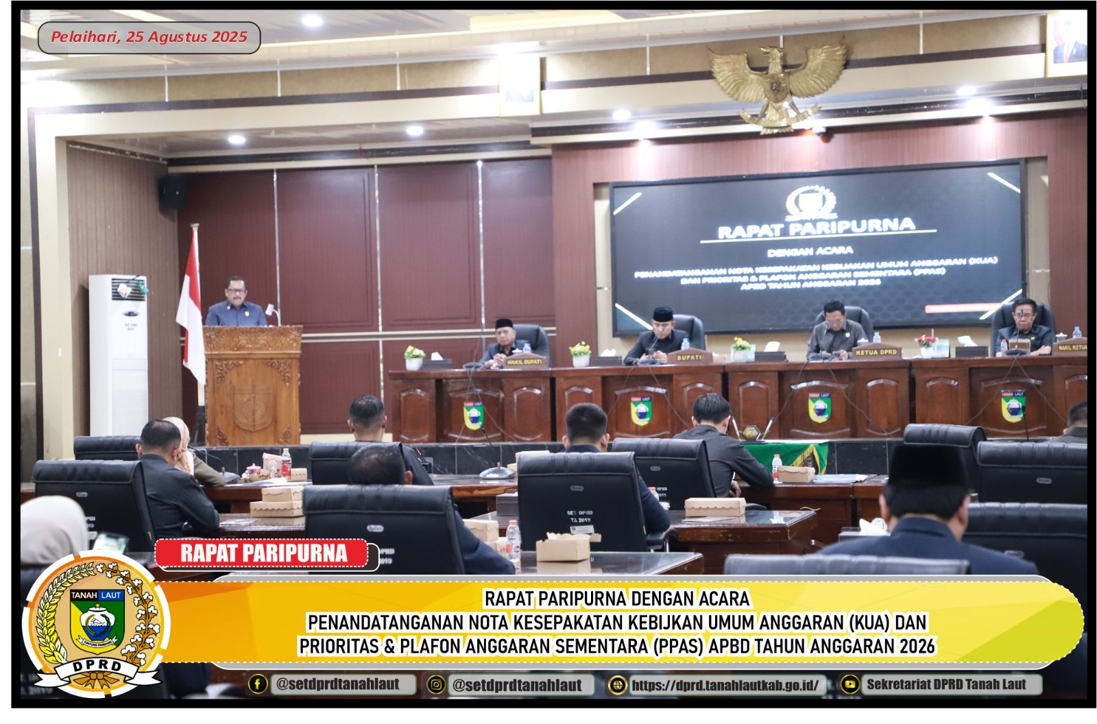 PARIPURNA DENGAN ACARA PENANDATANGANAN NOTA KESEPAKATAN KEBIJAKAN UMUM ANGGARAN (KUA) DAN PRIORITAS & PLAFON ANGGARAN SEMENTARA (PPAS) APBD TAHUN ANGGARAN 2026