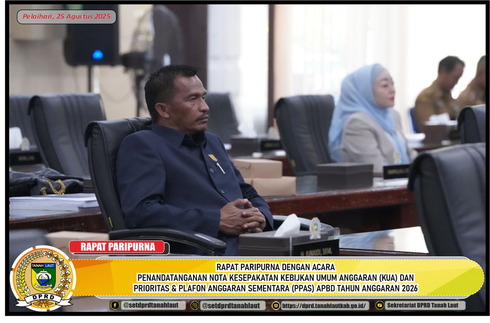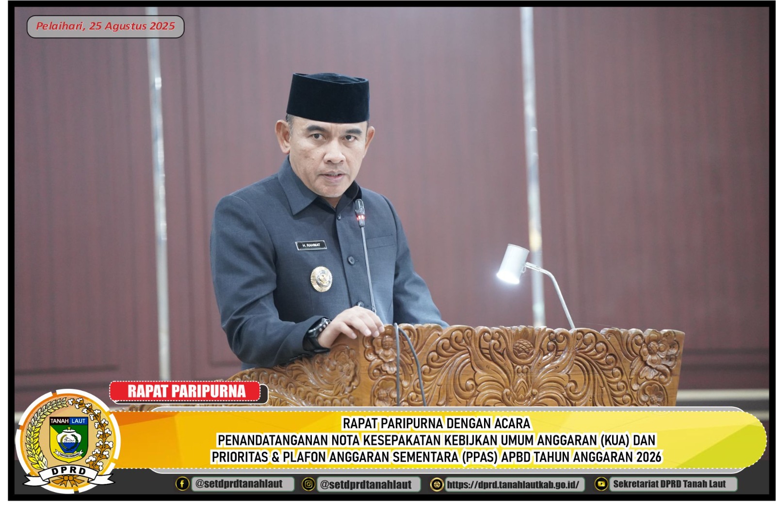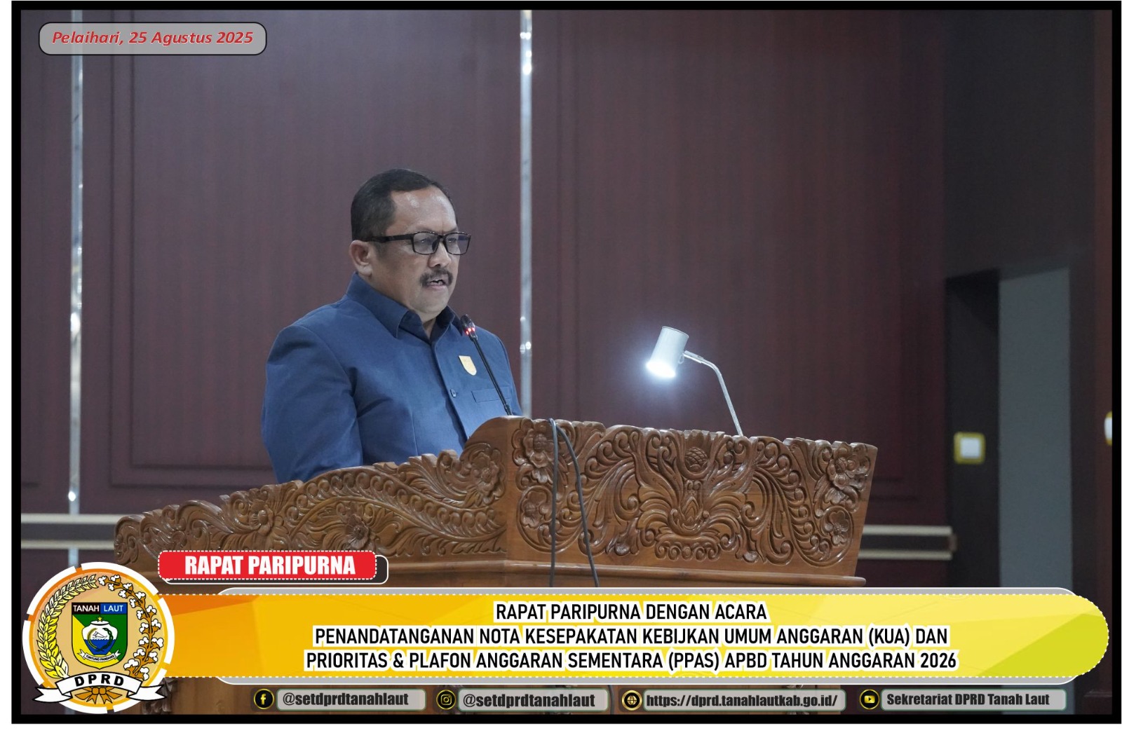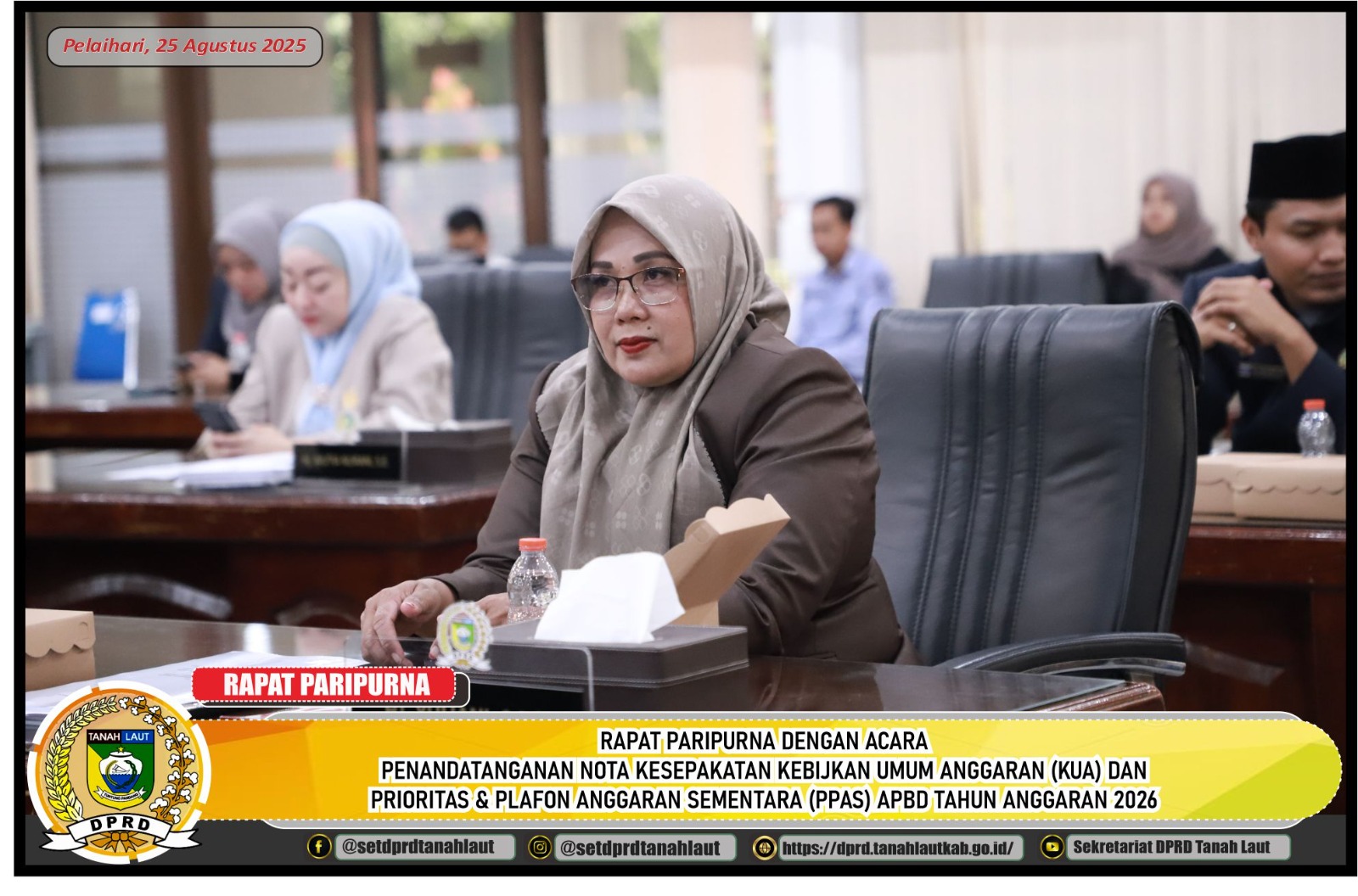 PARIPURNA DENGAN ACARA PENANDATANGANAN NOTA KESEPAKATAN KEBIJAKAN UMUM ANGGARAN (KUA) DAN PRIORITAS & PLAFON ANGGARAN SEMENTARA (PPAS) APBD TAHUN ANGGARAN 2026