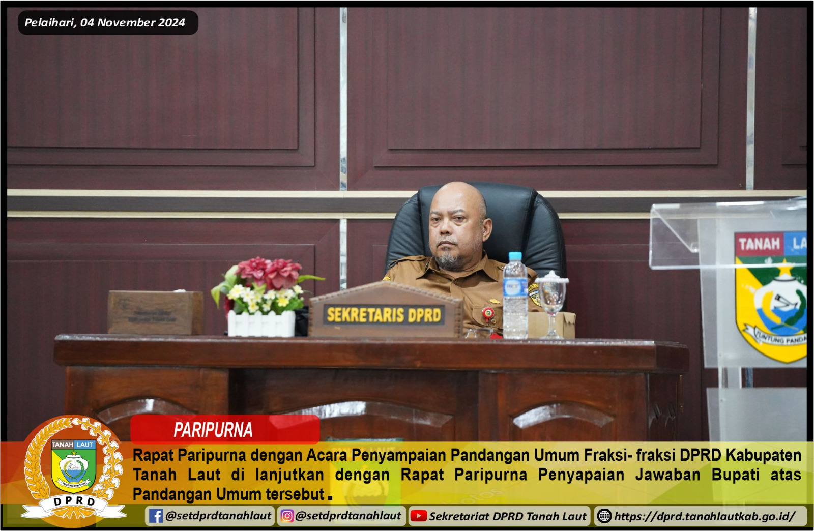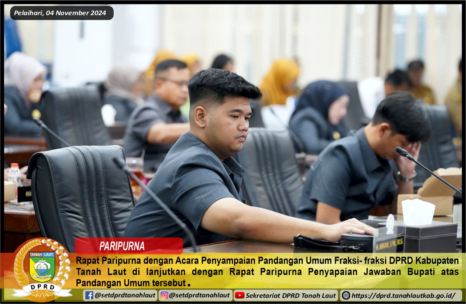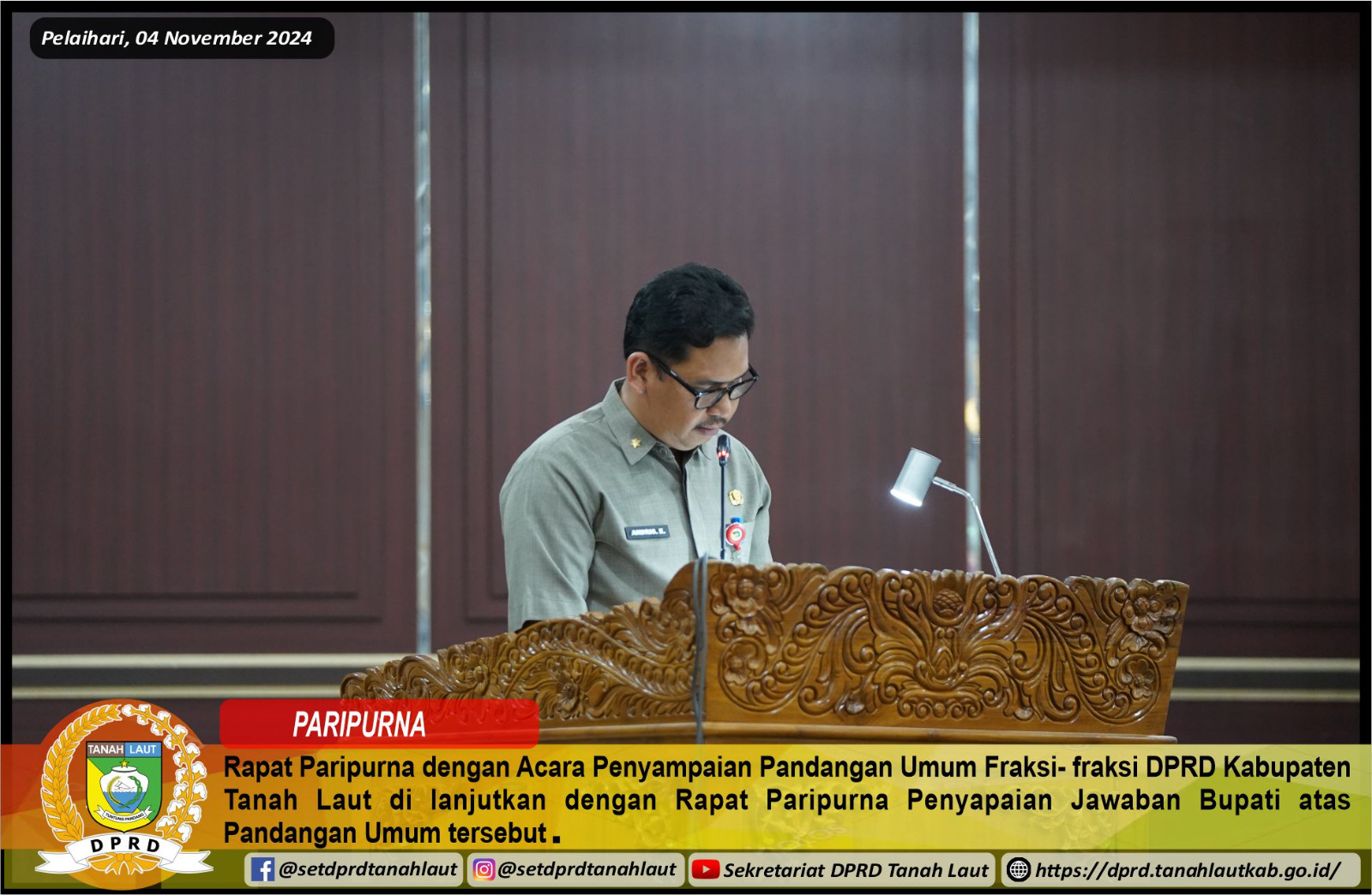 RAPAT PARIPURNA DENGAN ACARA PENYAMPAIAN PANDANGAN UMUM FRAKSI-FRAKSI DPRD KABUPATEN TANAH LAUT DILANJUTKAN DENGAN RAPAT PARIPURNA PENYAMPAIAN JAWABAN BUPATI ATAS PANDANGAN UMUM TERSEBUT