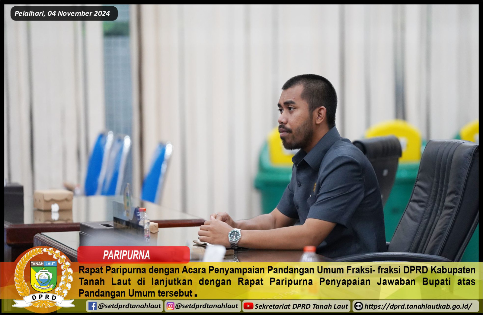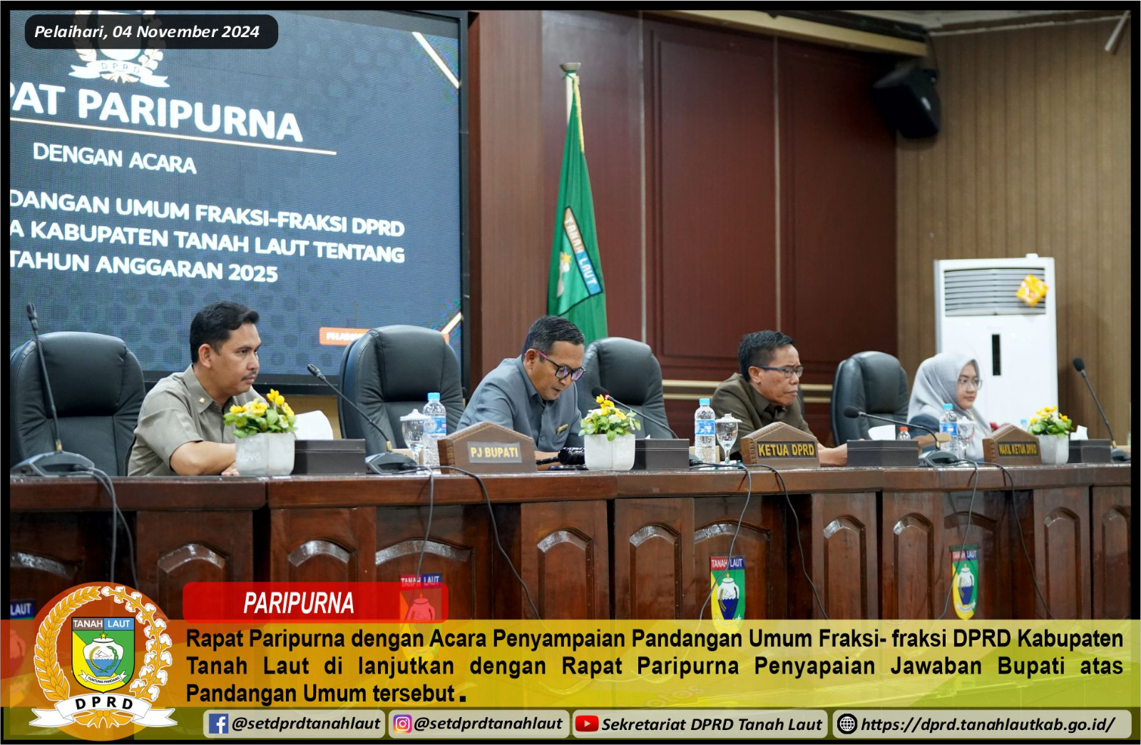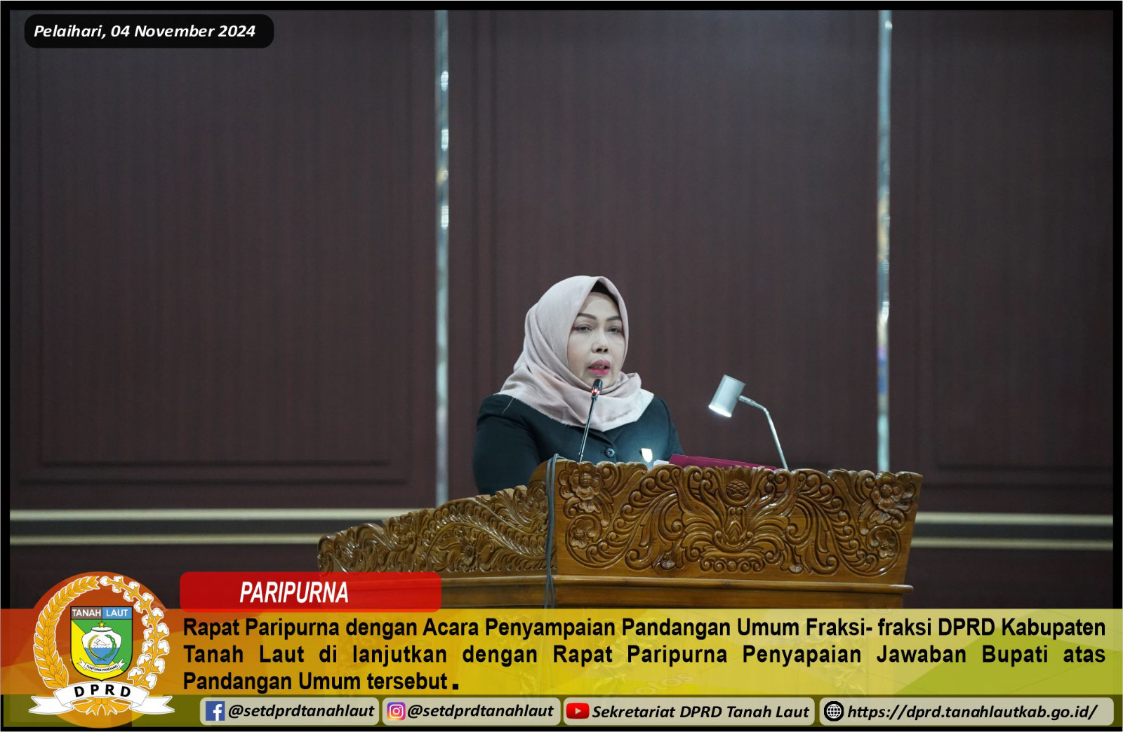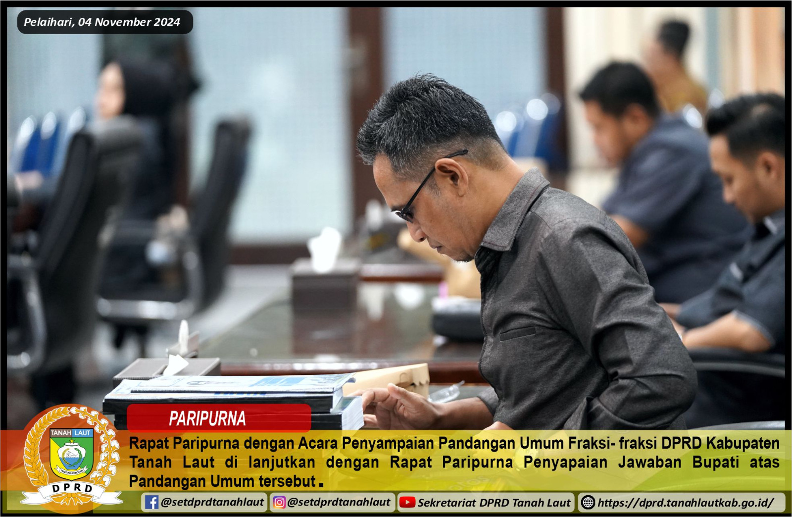 RAPAT PARIPURNA DENGAN ACARA PENYAMPAIAN PANDANGAN UMUM FRAKSI-FRAKSI DPRD KABUPATEN TANAH LAUT DILANJUTKAN DENGAN RAPAT PARIPURNA PENYAMPAIAN JAWABAN BUPATI ATAS PANDANGAN UMUM TERSEBUT