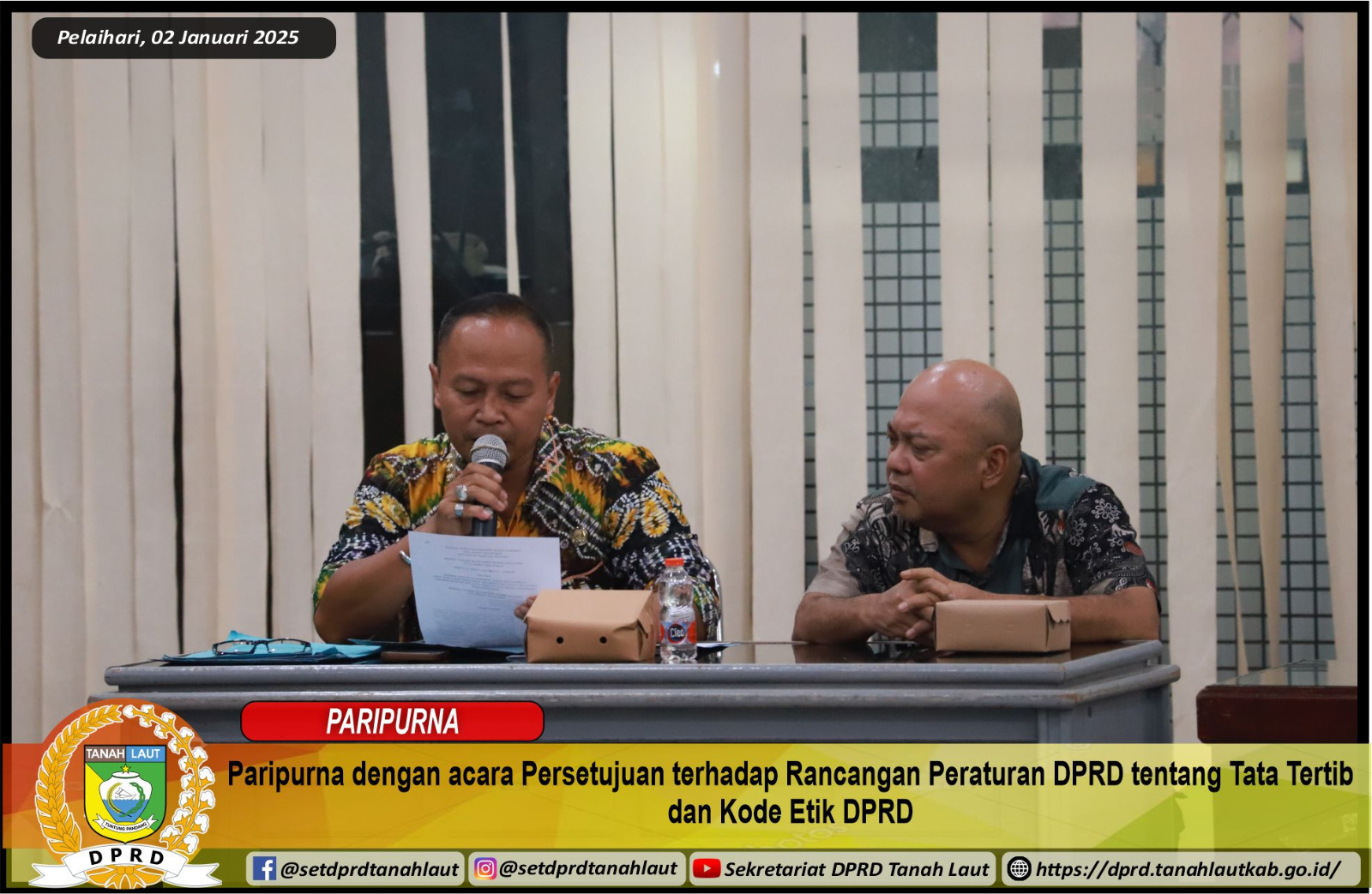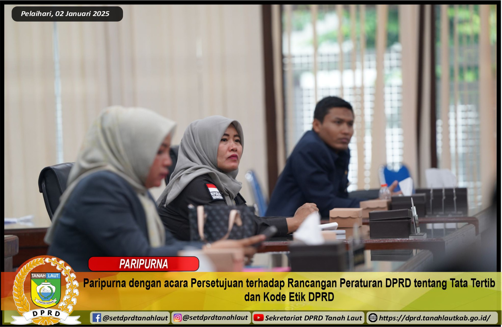 PARIPURNA PERSETUJUAN TERHADAP RANCANGAN PERATURAN DPRD TENTANG TATIB DAN KODE ETIK