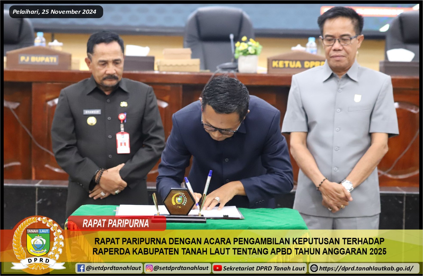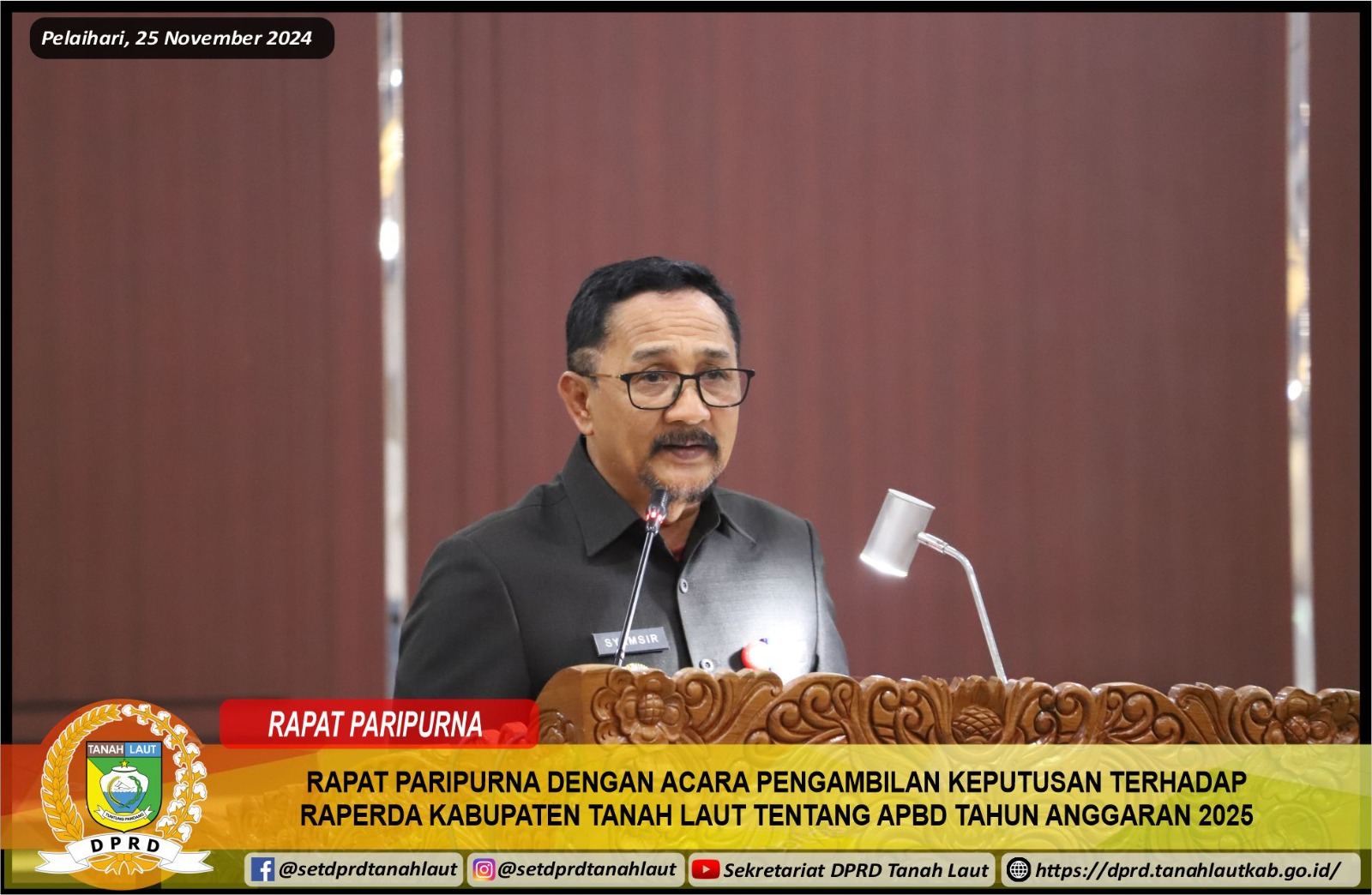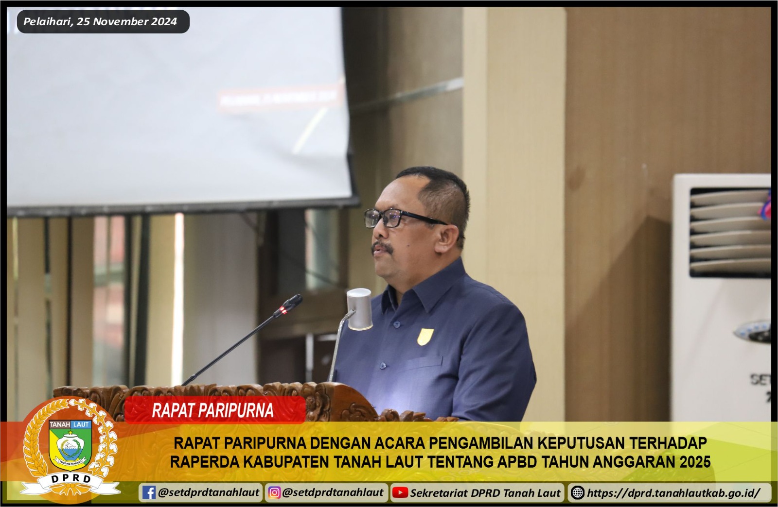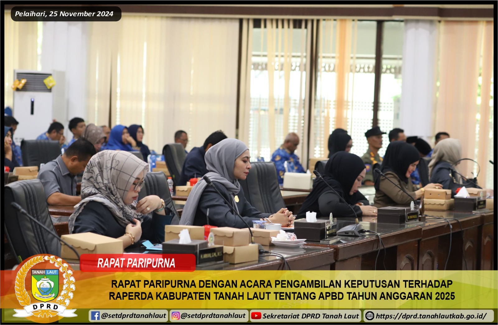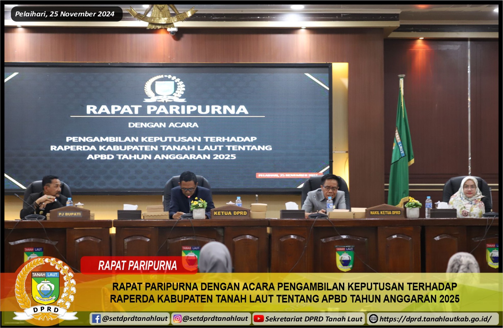 RAPAT PARIPURNA DENGAN ACARA PENGAMBILAN KEPUTUSAN TERHADAP RAPERDA KABUPATEN TANAH LAUT TENTANG APBD TAHUN ANGGARAN 2025