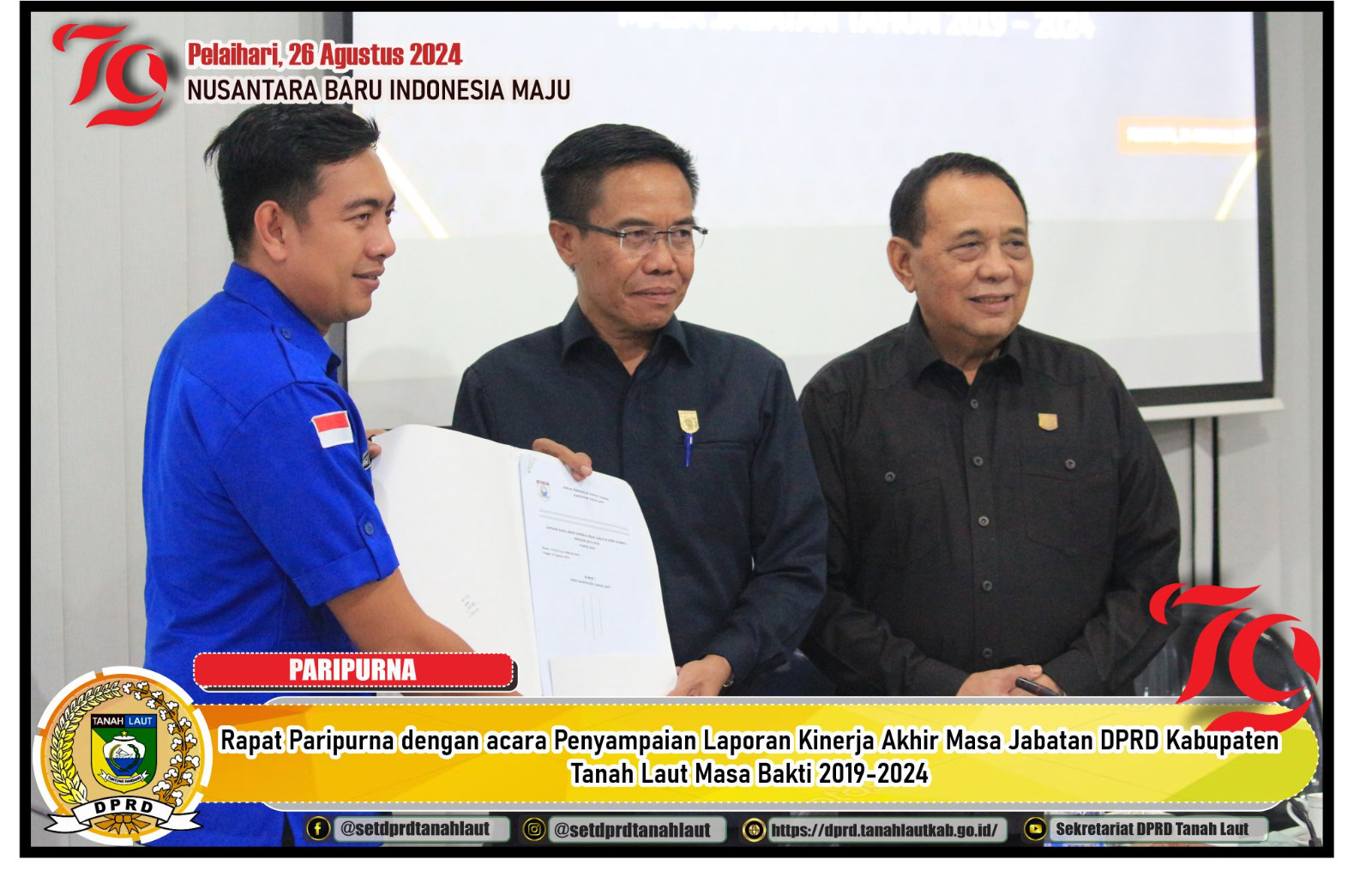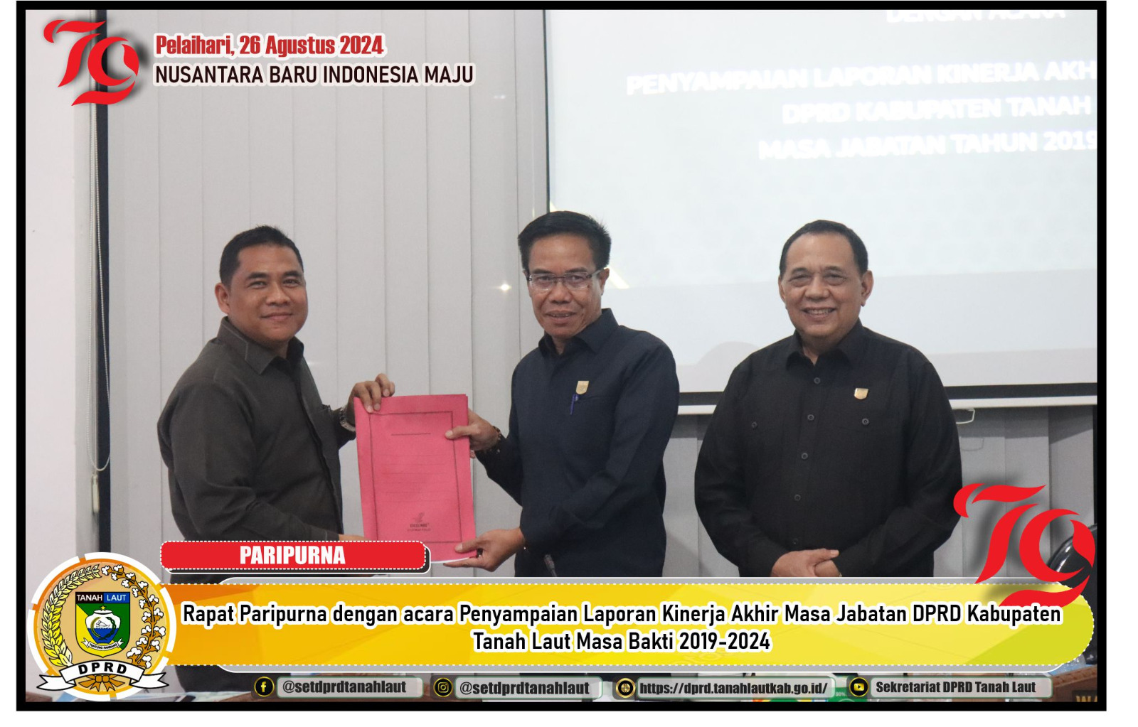 RAPAT PARIPURNA DENGAN ACARA PENYAMPAIAN LAPORAN KINERJA AKHIR MASA JABATAN DPRD KABUPATEN TANAH LAUT MASA BAKTI 2019-2024
