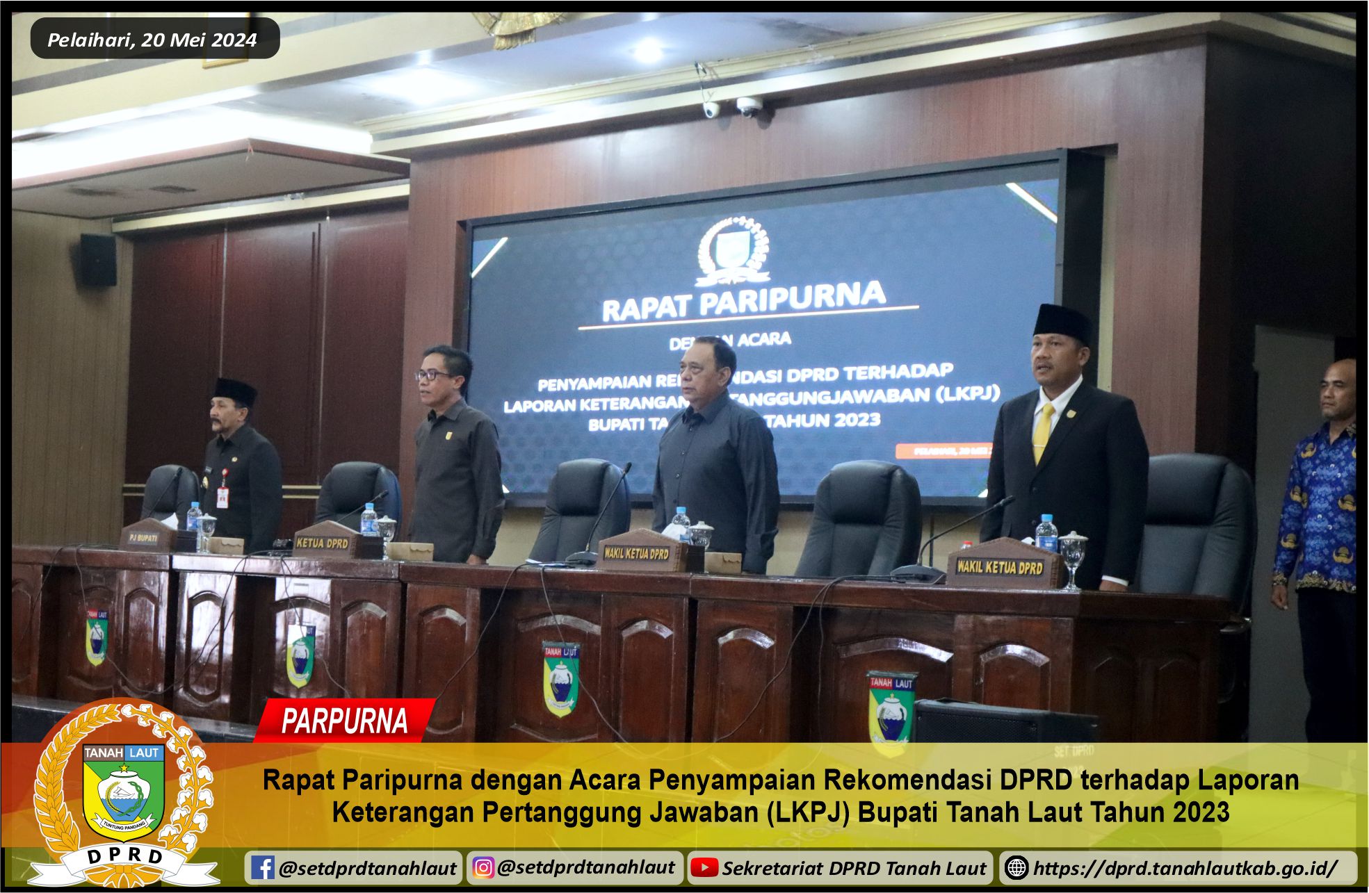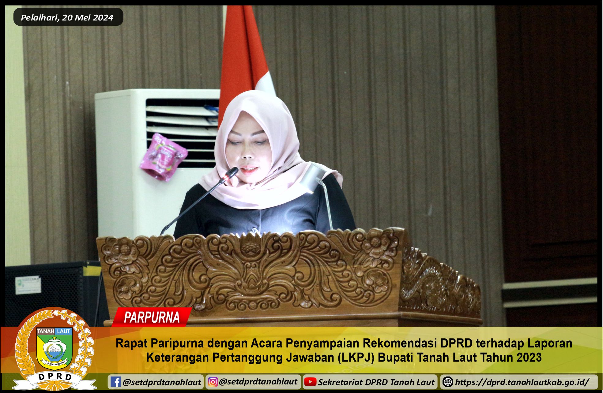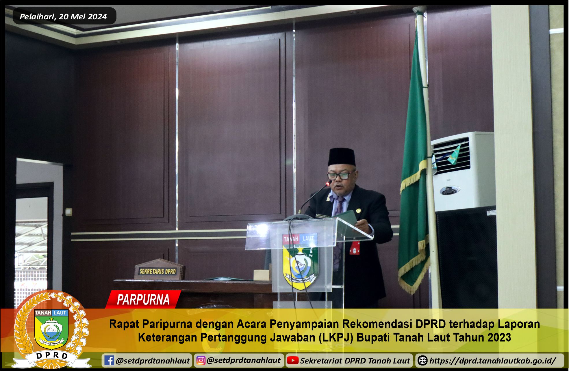 RAPAT PARIPURNA DENGAN ACARA PENYAMPAIAN REKOMENDASI DPRD TERHADAP LAPORAN KETERANGAN PERTANGGUNG JAWABAN (LKPJ) BUPATI TANAH LAUT TAHUN 2023
