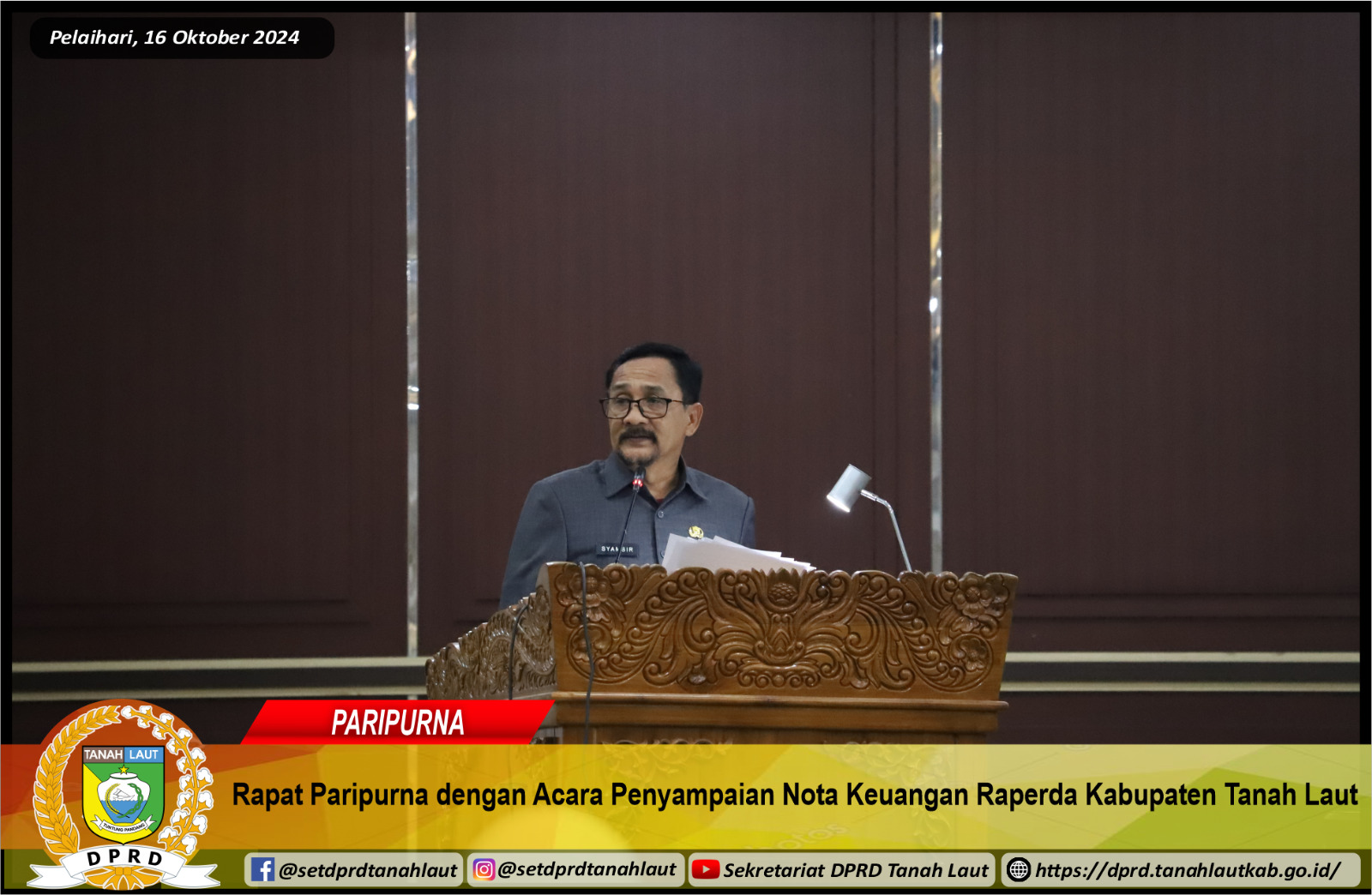 RAPAT PARIPURNA DENGAN PENYAMPAIAN NOTA KEUANGAN RAPERDA KABUPATEN TANAH LAUT
