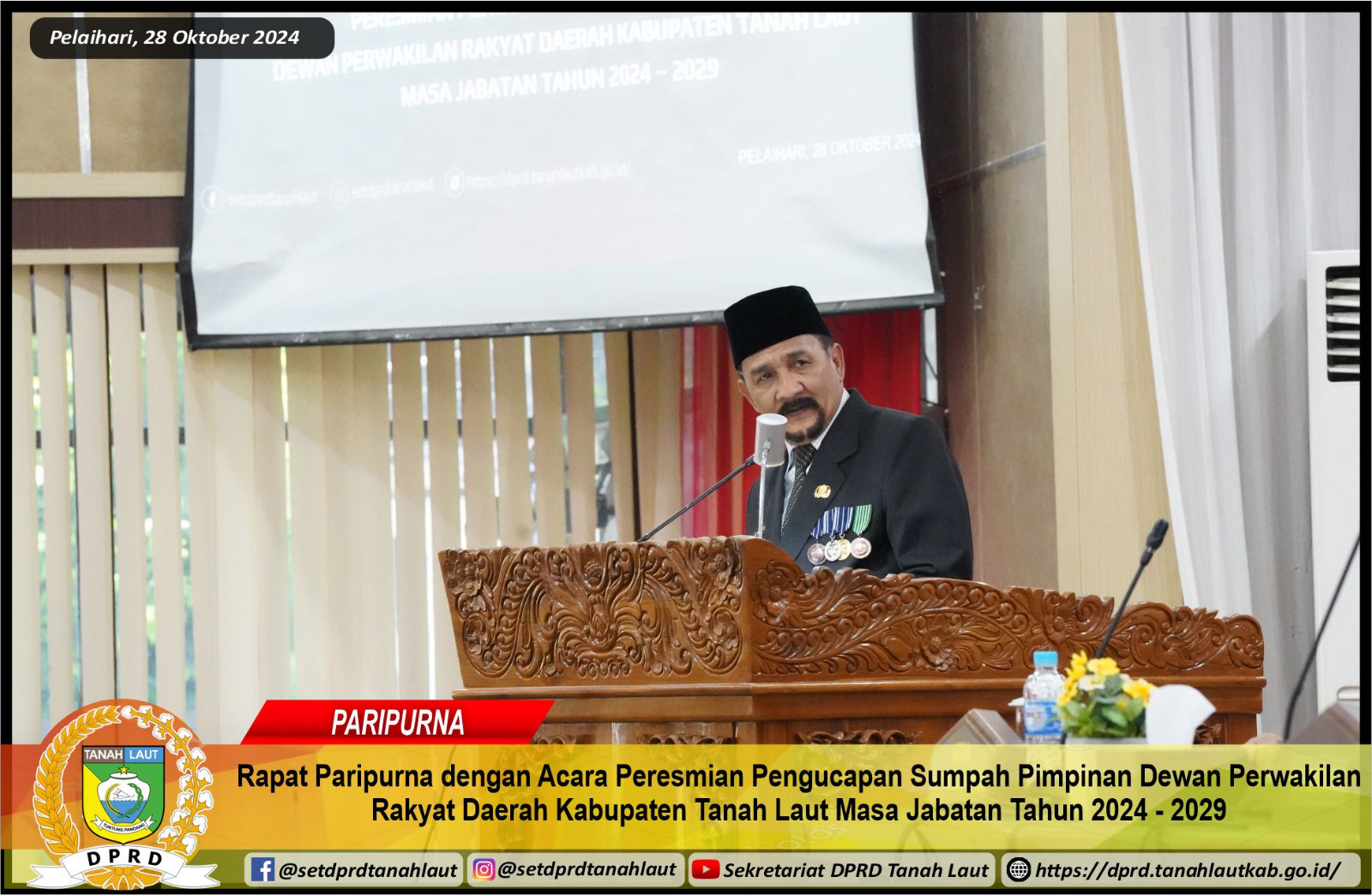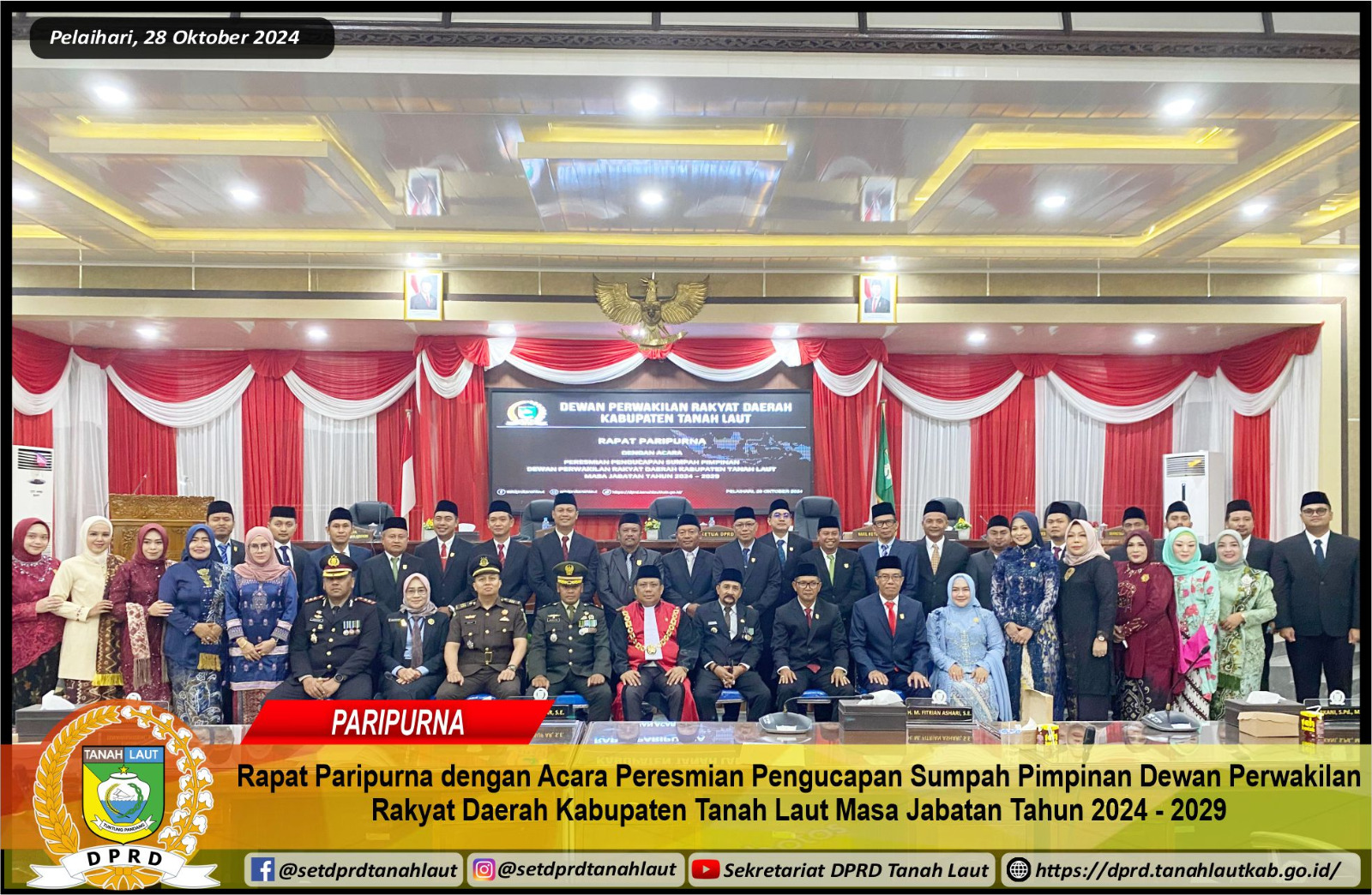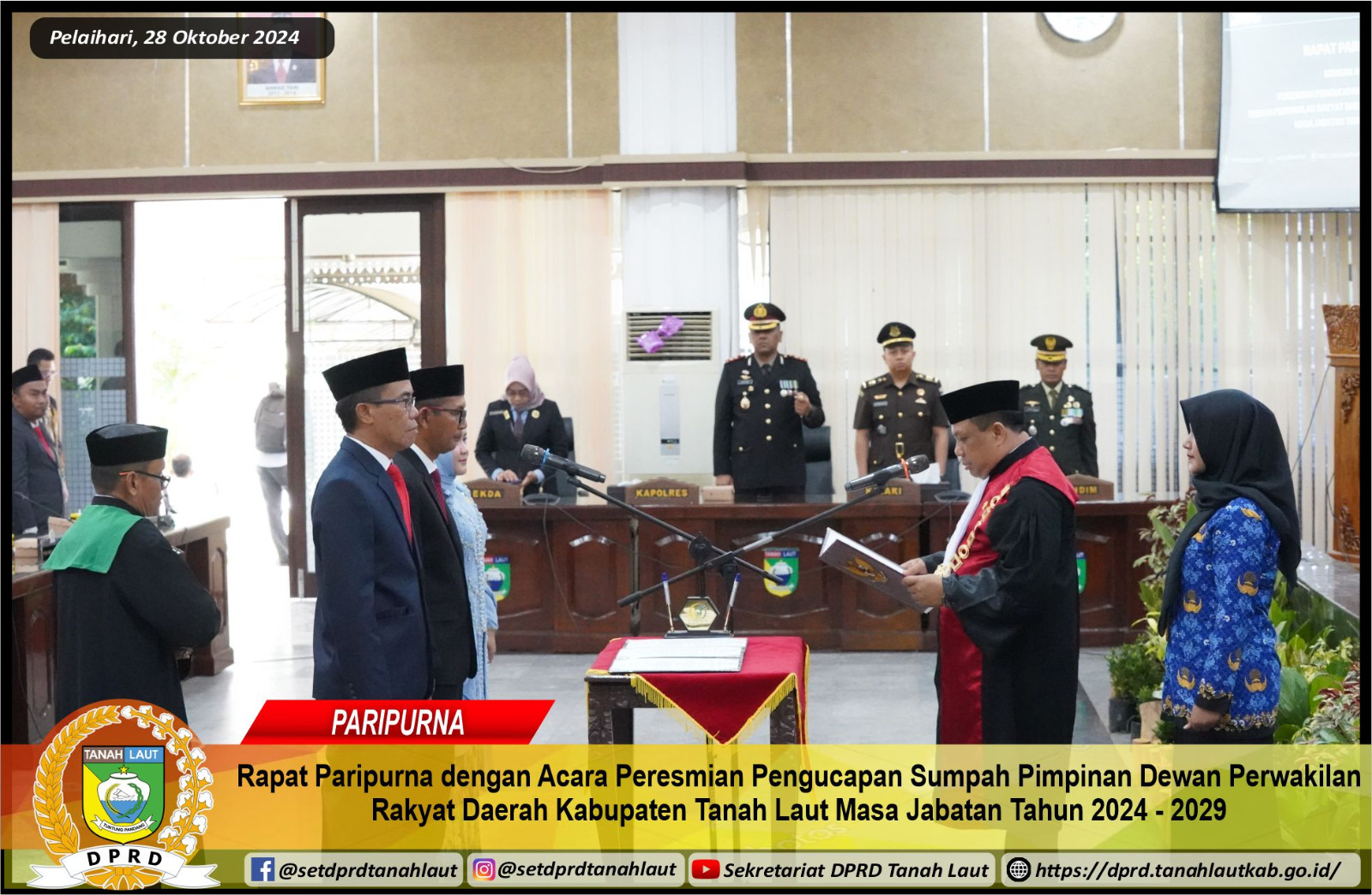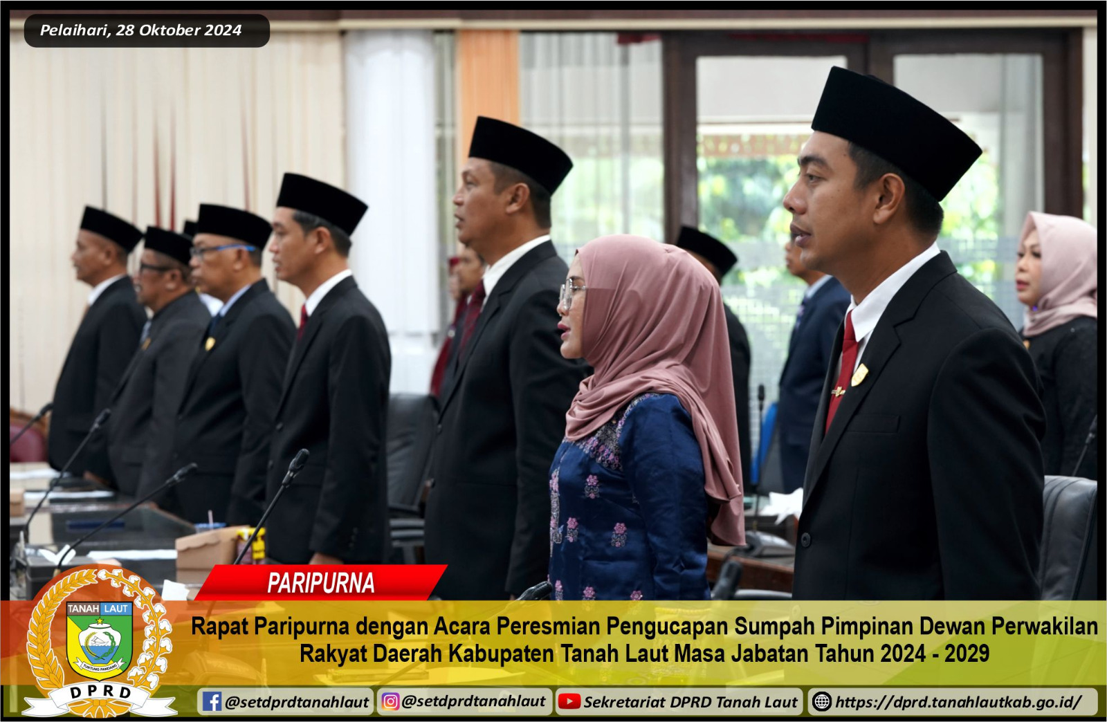 RAPAT PARIPURNA PERESMIAN PENGUCAPAN SUMPAH PIMPINAN DEWAN PERWAKILAN RAKYAT DAERAH KABUPATEN TANAH LAUT MASA JABATAN TAHUN 2024-2029