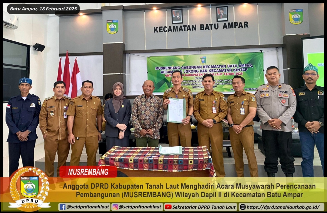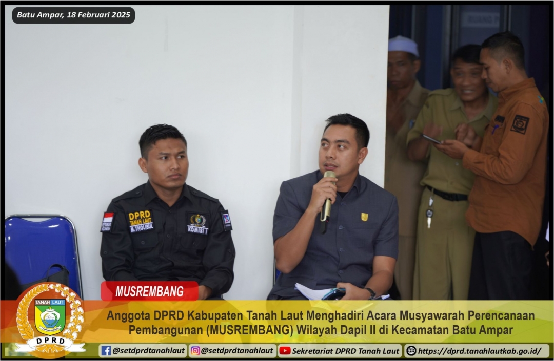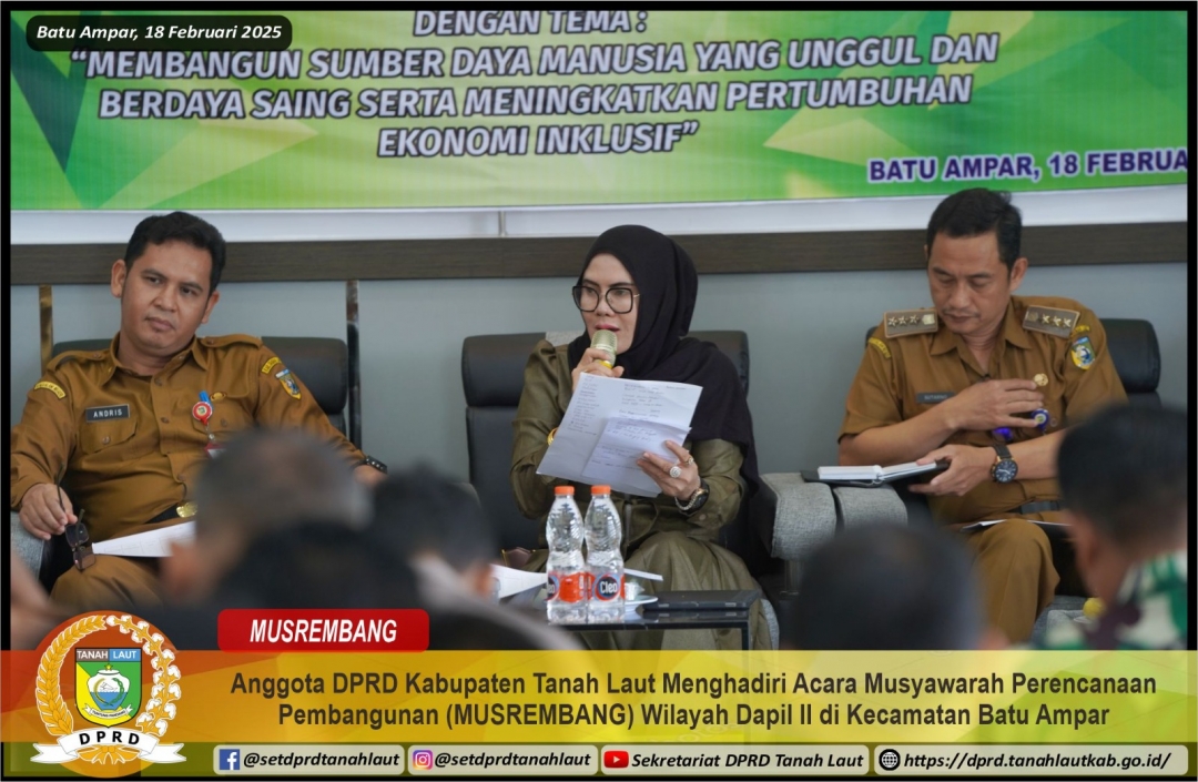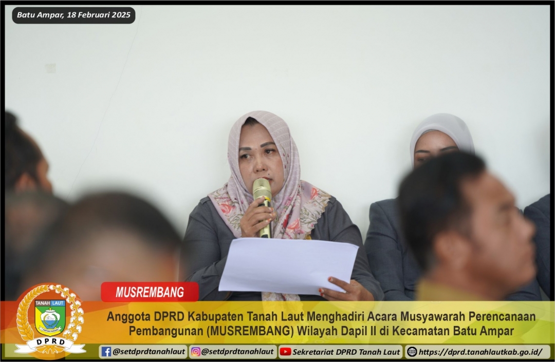 ANGGOTA DPRD KABUPATEN TANAH LAUT MENGHADIRI ACARA MUSYAWARAH PERENCANAAN PEMBANGUNAN (MUSRENBANG) WILAYAH DAPIL II DI KECAMATAN BATU AMPAR