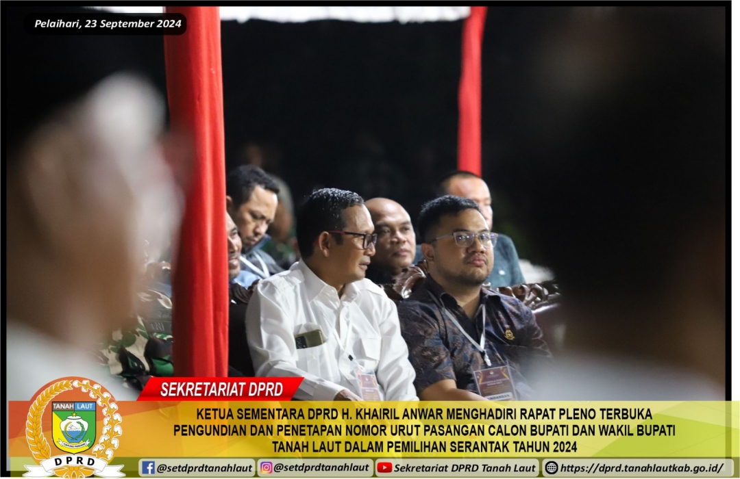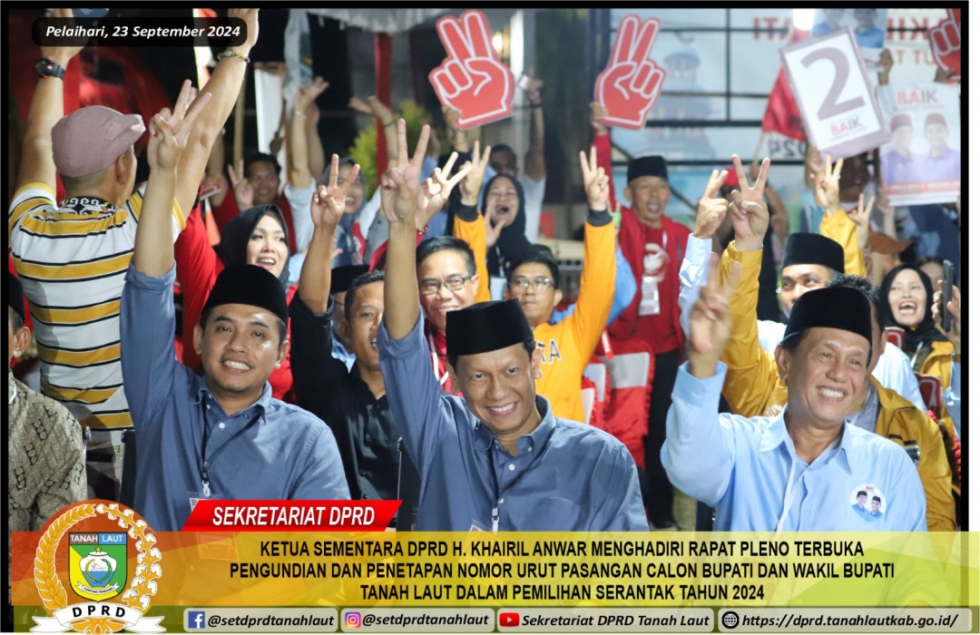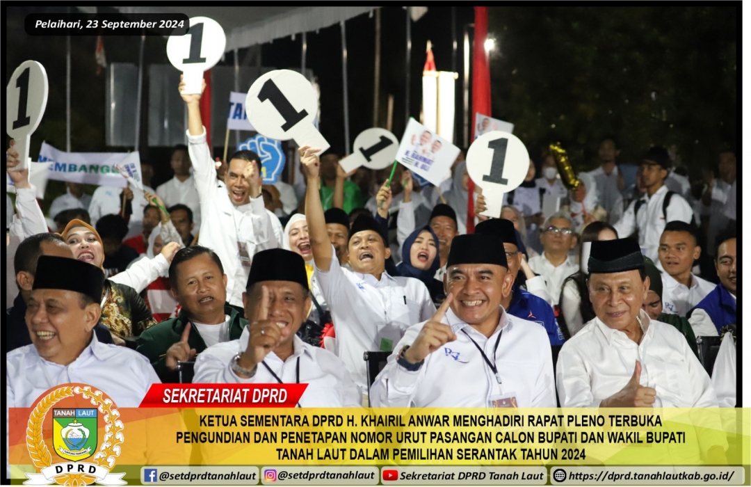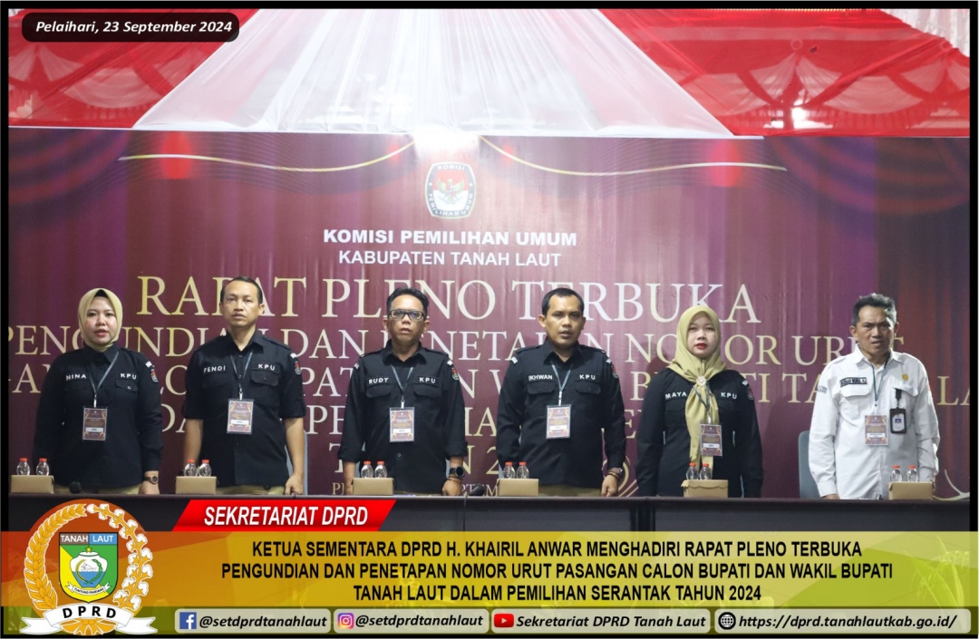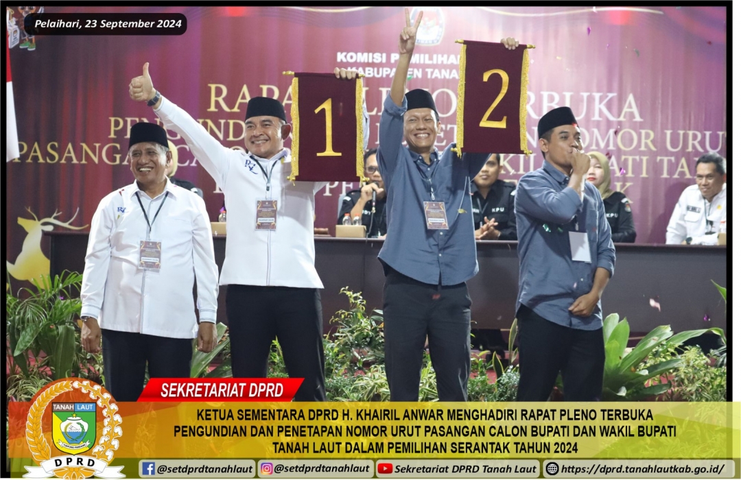 KETUA SEMENTARA DPRD H. KHAIRIL ANWAR MENGHADIRI RAPAT PLENO TERBUKA PENGUNDIAN DAN PENETAPAN NOMOR URUT PASANGAN CALON BUPATI DAN WAKIL BUPATI TANAH LAUT DALAM PEMILIHAN SERENTAK TAHUN 2024